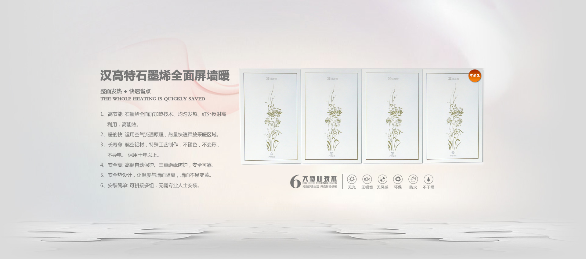 漢高特自主研發(fā)的新型石墨烯電地暖、石墨烯電采暖、電熱膜電地暖、碳纖維電暖、碳晶墻暖畫、電地暖廠家加盟、電熱膜工廠,采用新設計、新材料在行業內首創(chuàng)了耐強酸、耐強堿、防火阻燃、防水防潮等特點。產品暢銷江蘇、四川、甘肅、山西、河北、河南、內蒙、新疆等地。